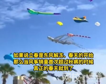 导读:海洋风筝爆火 网友:春天的信号 原因简直惊呆了!如果说立春是东风解冻、春天的开始,那么当风筝销量首次超过秋裤的时候,真正的春天就到了。