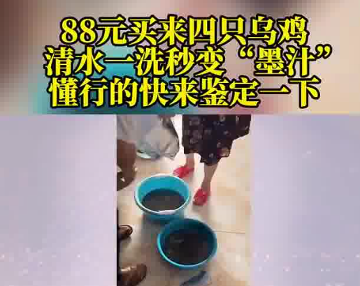 近日,重庆60多岁的杜阿姨,花88元在网络平台购买了四只乌鸡。可是当她收到货、清洗这些乌鸡的时候,却被眼前的情景吓住了:一盆清水洗成一盆“墨汁”。客服回应:正常情况,但是可以给30元补偿。